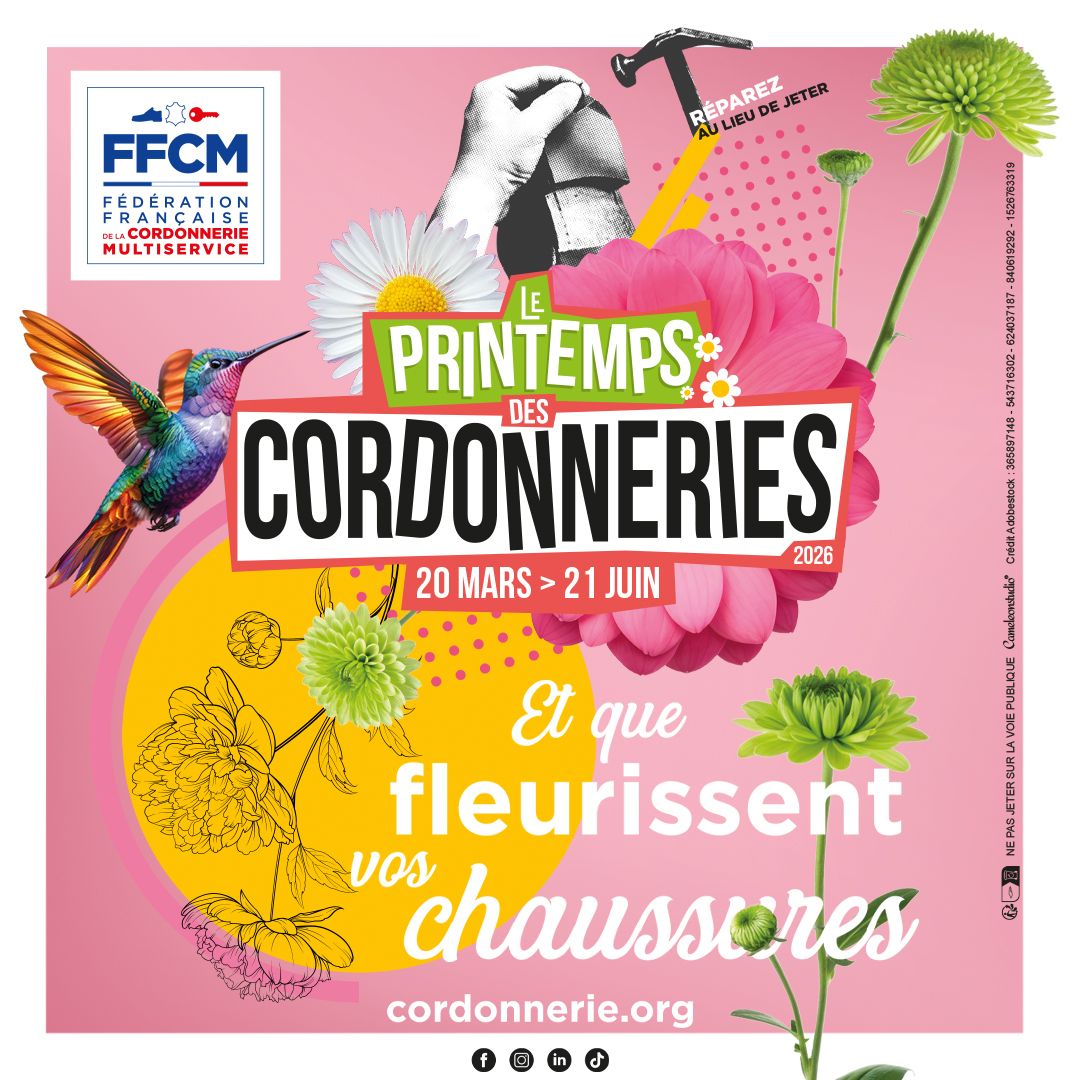 Le Printemps des Cordonneries est une initiative portée par la Fédération Française de la Cordonnerie Multiservice (FFCM) pour valoriser le métier et sensibiliser le public à une consommation plus responsable. Cette campagne vise à rappeler que la réparation est un geste d’avenir, à la fois économique et écologique. En confiant vos chaussures à un artisan, vous prolongez leur durée de vie, évitez le gaspillage, et soutenez l’artisanat local.